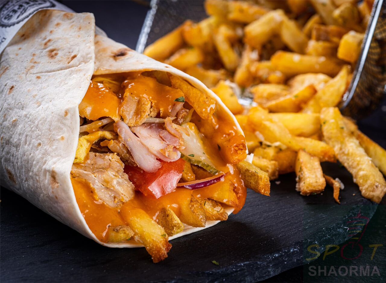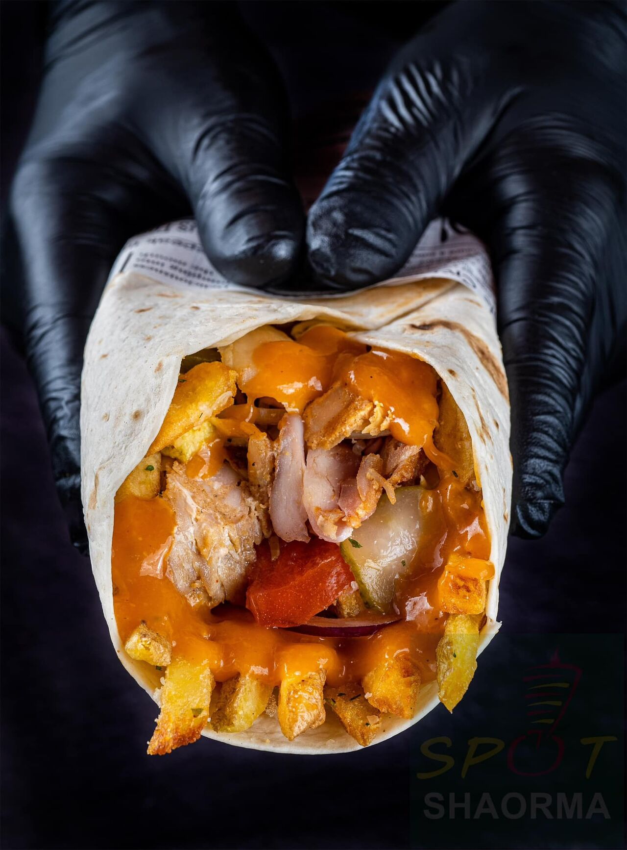Probabil suntem printre puținii care dăm șansa clientului să asocieze carnea de pui cu cea de porc rotisata, cu crispy de pui, poate și puțin bacon, într-o singură shaorma.
